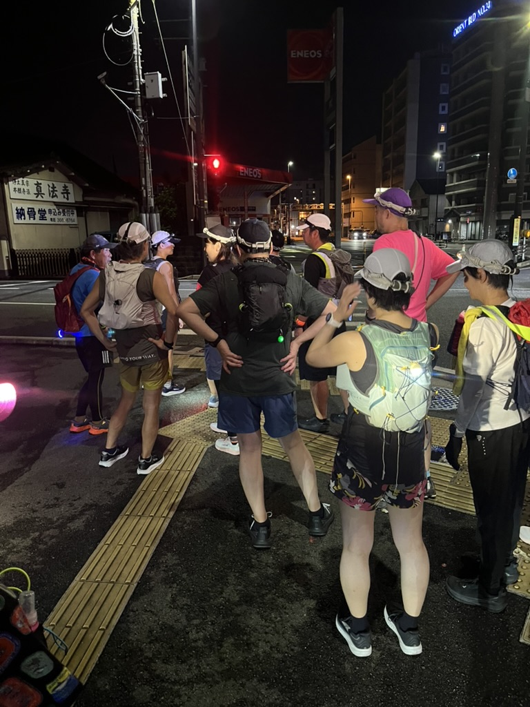 熊本店を夜の21:30に出発し、夜が明けて始発電車に乗るまで歩き続けます。記録を狙うイベントではなく、夜間の行動そのものに慣れることが目的。秋に100キロウォークに挑戦するスタッフ中平と、スタッフ北﨑(ザッキー)がガイドしました☺️