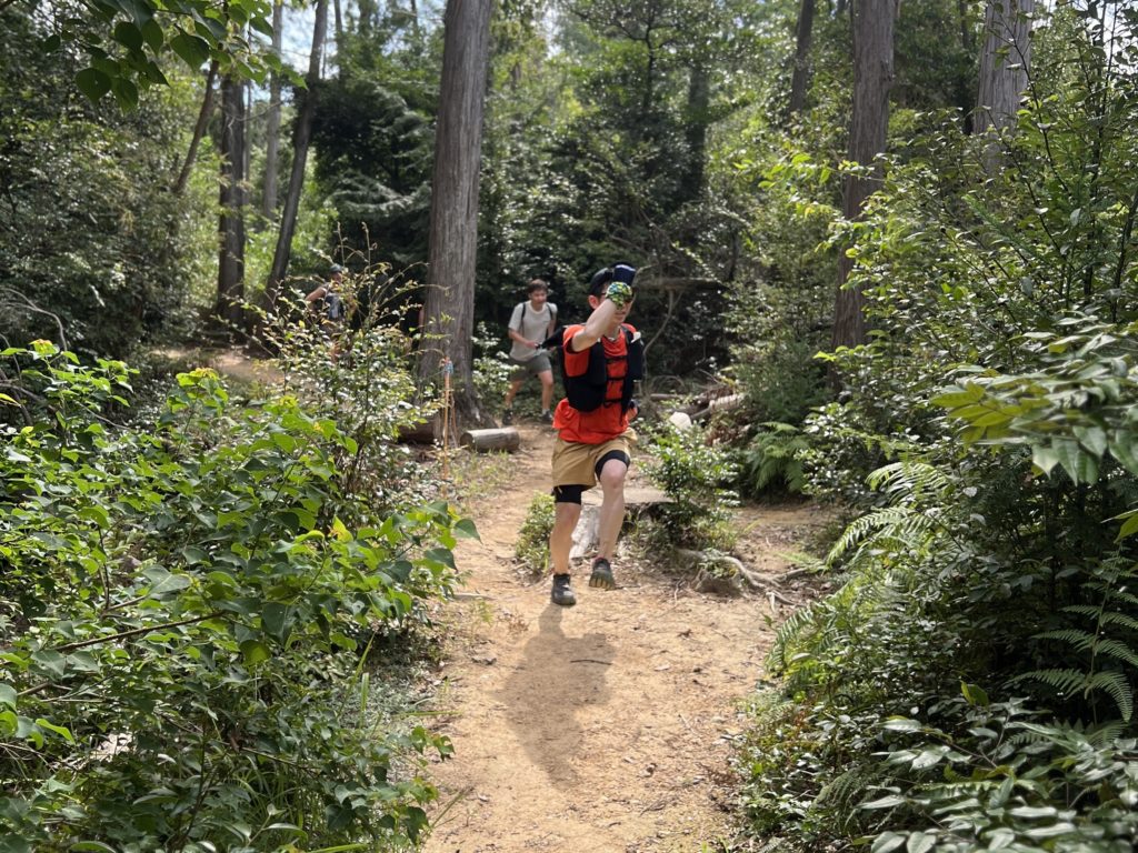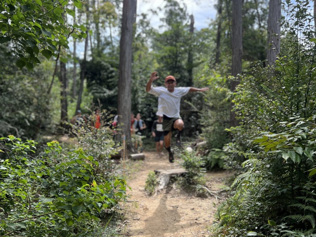 トレイルランニングの経験がないお客様を中心にお集まりいただき、総距離5km程を走ったり歩いたり、登ったり下ったりしながら「山を走る」を体験💨